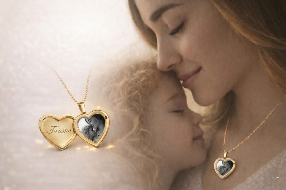 Collar y Dije de Plata de Corazón Doble con foto personalizada de proyección 😍