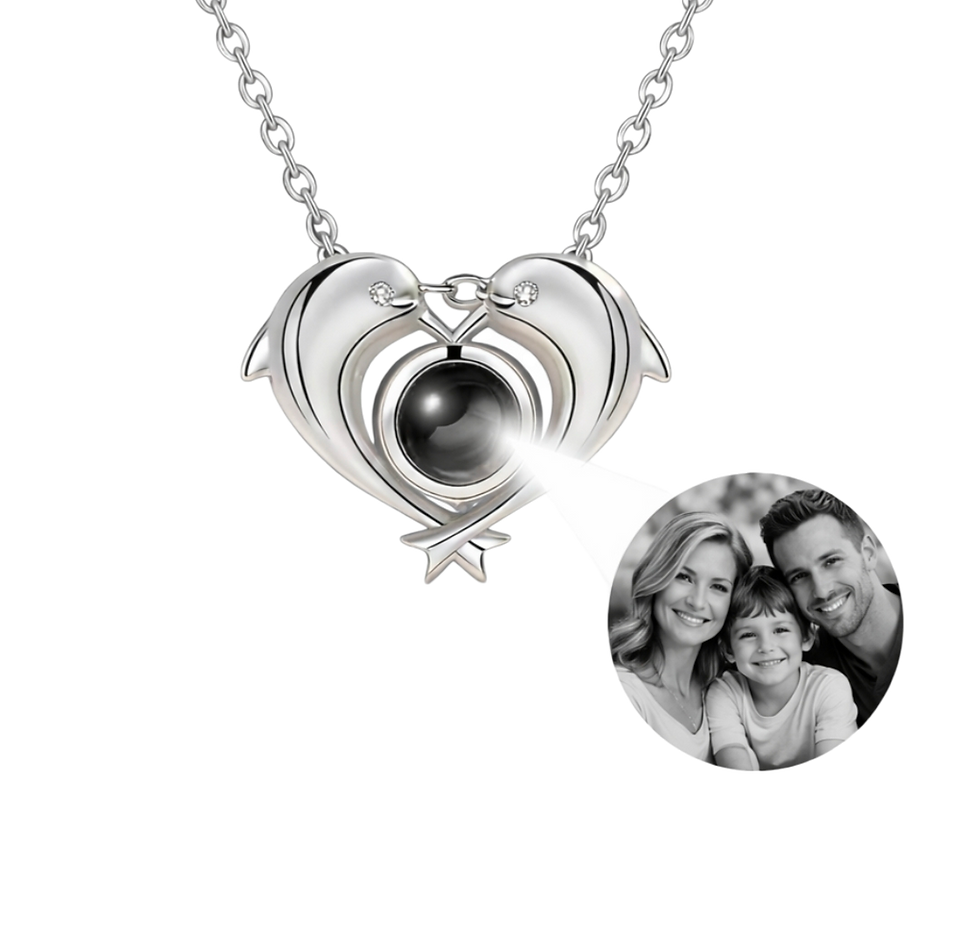 Collar y Dije de Plata de Corazón Doble con foto personalizada de proyección 😍